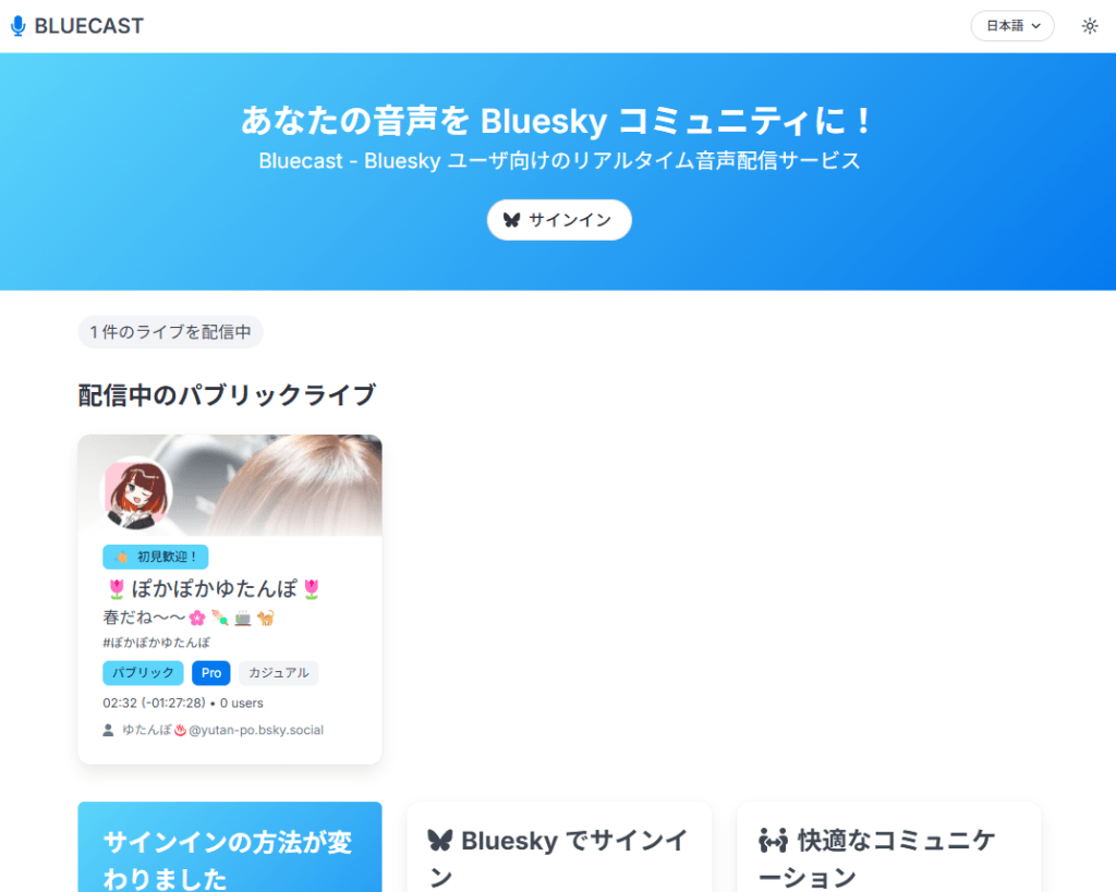 Bluecast は音声配信がメインのサービスですが、その補助的な機能として今回、画面配信機能を追加しました(動画を参照)。画面配信は音声と同様に低遅延なので、リスナーと楽しくやりとりをしながら配信ができます。ゲーム配信やお絵かき配信、コーディング配信などをおたのしみいただけたらとおもっています(配信で法的に問題のあるコンテンツは使用しないでください)。なお、画面配信機能は Bluecast Pro 限定の機能となっています。